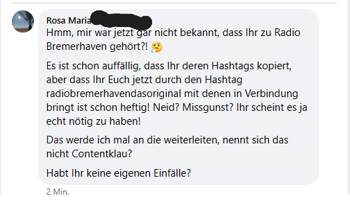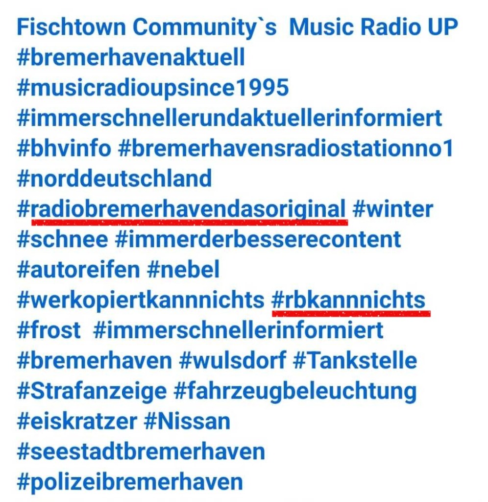 Fast täglich erreichen uns Mails und Nachrichten von unseren Lesern, ob und was wir mit der Fischtown Community Bremerhaven zu tun haben, da die Fischtown Community widerrechtlich u.a. unsere markenbezogenen Hashtags (#radiobremerhavendasoriginal) in ihren Beiträgen nutzt.